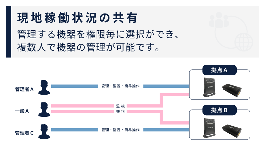 ユーザーや拠点ごとに機器を登録し、管理することができます。